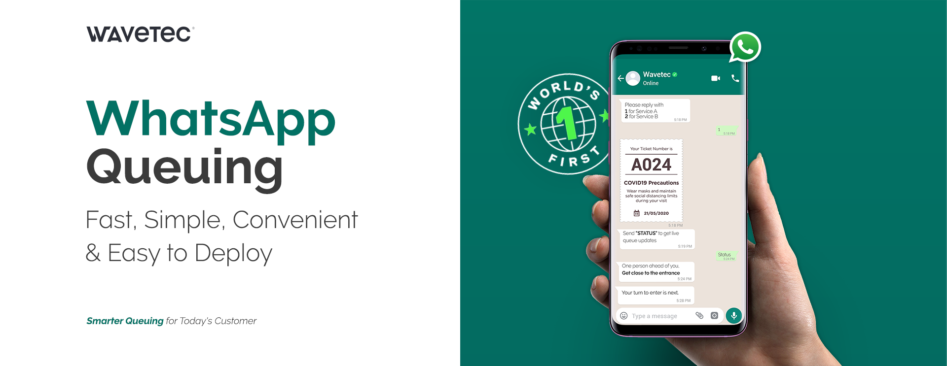 Download the brochure for information on how the world's first ever WhatsApp Queuing solution can transform the way you manage customers in queues and crowded waiting areas. You’ll also learn how to increase your staff’s service efficiency and create brand value from improved customer experiences.